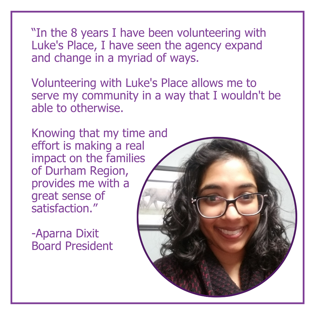 The Luke’s Place Board of Directors supports our work and provides mission-based leadership and strategic governance. Our Board meets on bi-monthly basis, with committees meeting on alternate months. New members are welcomed each year at the Annual General Meeting. We’re currently looking for new members to join our Board!