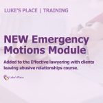 Lawyers representing survivors of intimate partner violence often face situations where time is critical. When safety is at risk, waiting weeks or months for a regular court date is simply not an option. That’s why Luke’s Place has added a new module on emergency motions to our Effective lawyering with clients leaving abusive relationships course. Emergency motions are one of…